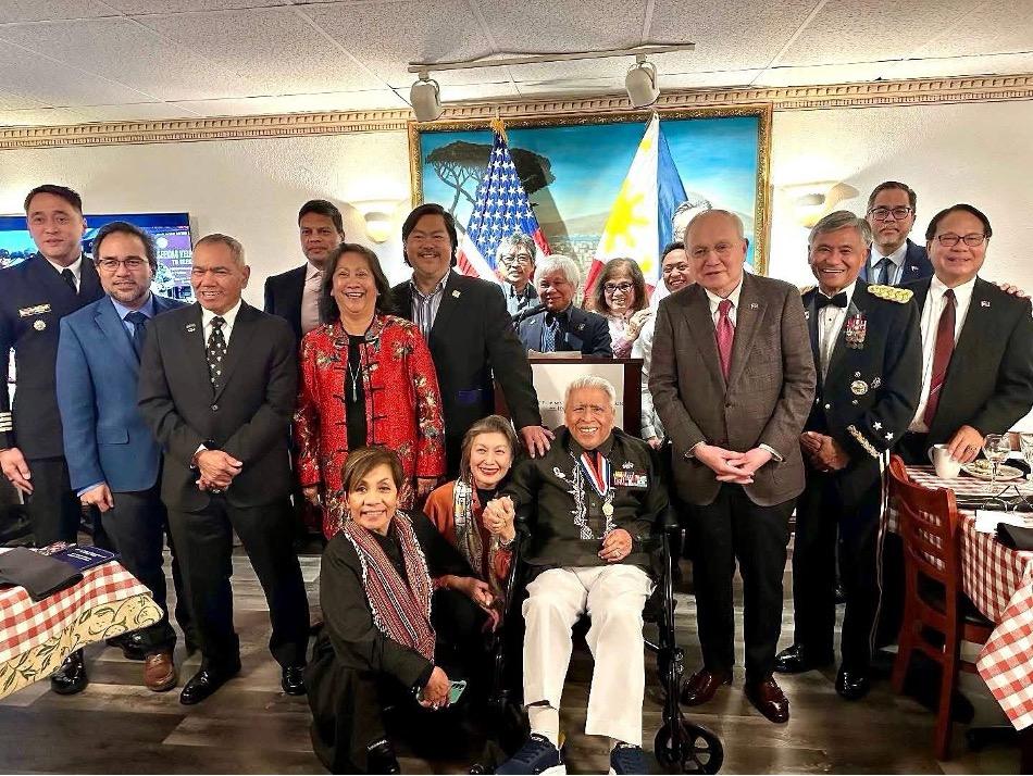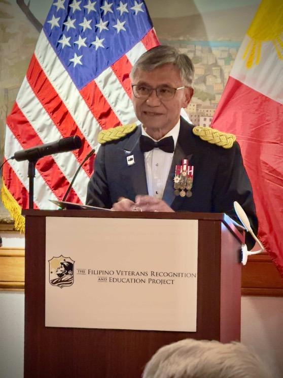 Recalling “the first legendary night at the Irish pub when we first lit the flame that became FilVetREP,” Ben de Guzman – the evening’s keynote speaker, said he was “fortunate to be in the position to help General Taguba and the ragtag team he was putting together that ultimately won the CGM for our veterans.” De Guzman, the DC Mayor’s Office Director on Asian and Pacific Islander Affairs (MOAPIA), said he was privileged in the last 30 years to have been “part of the national conversation about something larger than myself. The issue of equity for Filipino World War II veterans ultimately became a central part of that conversation that I was able to join. It has been the honor of a lifetime to have played even a small role in the work we’ve done here to serve those who served us with distinction and sacrifice during World War II.” De Guzman is a founding board member of FilVetREP.