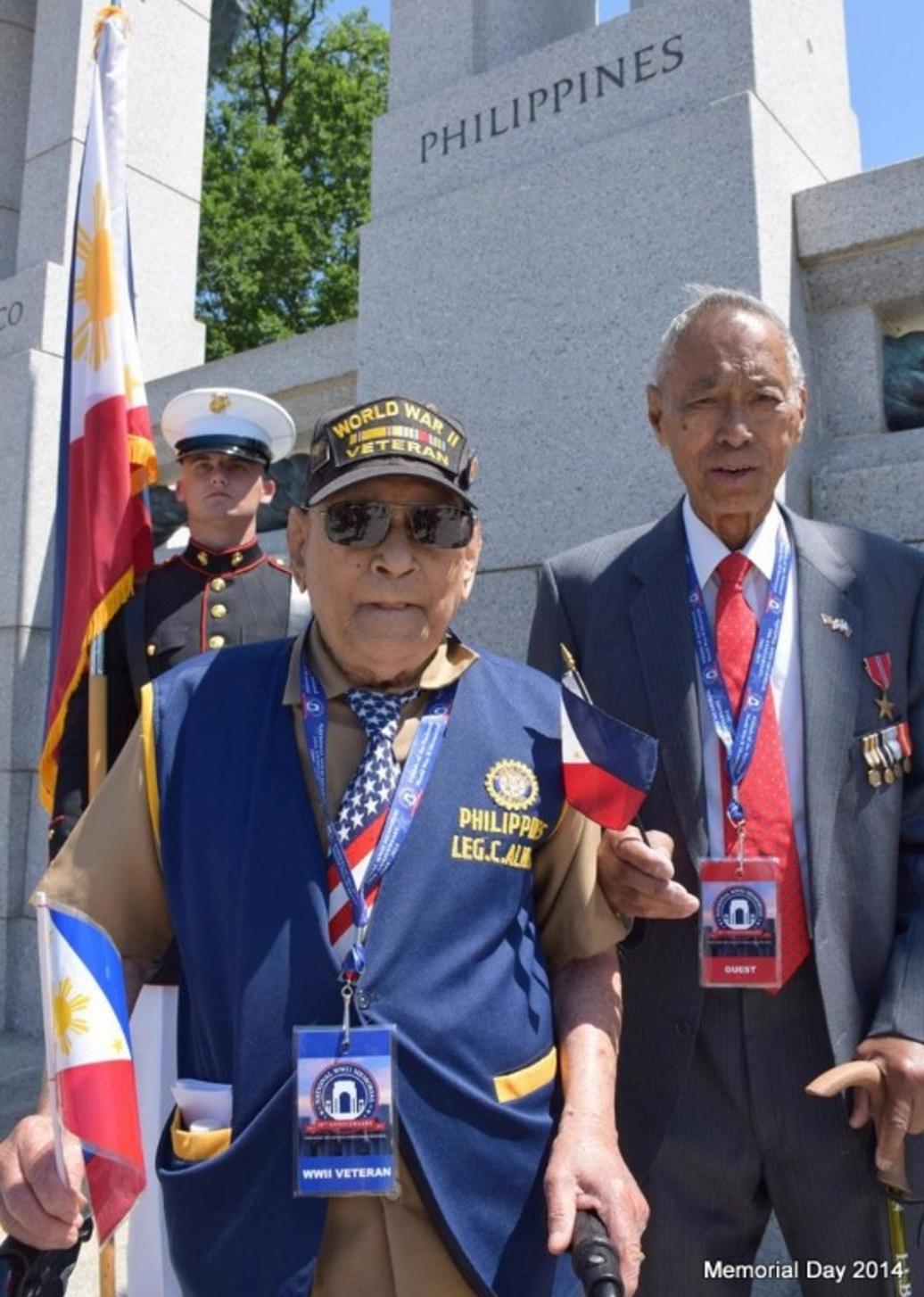 Filipino World War II Veterans Celestino Almeda (left) and Jesse Baltazar at a Memorial Day commemoration in 2014, National World War II Memorial (Photo courtesy of NBC News)